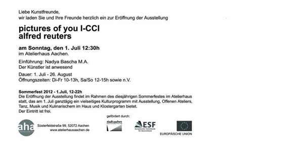 pictures of you I-CCI alfred reuters im atelierhaus aachen 1.7. - 26.8.2012 vernissage.